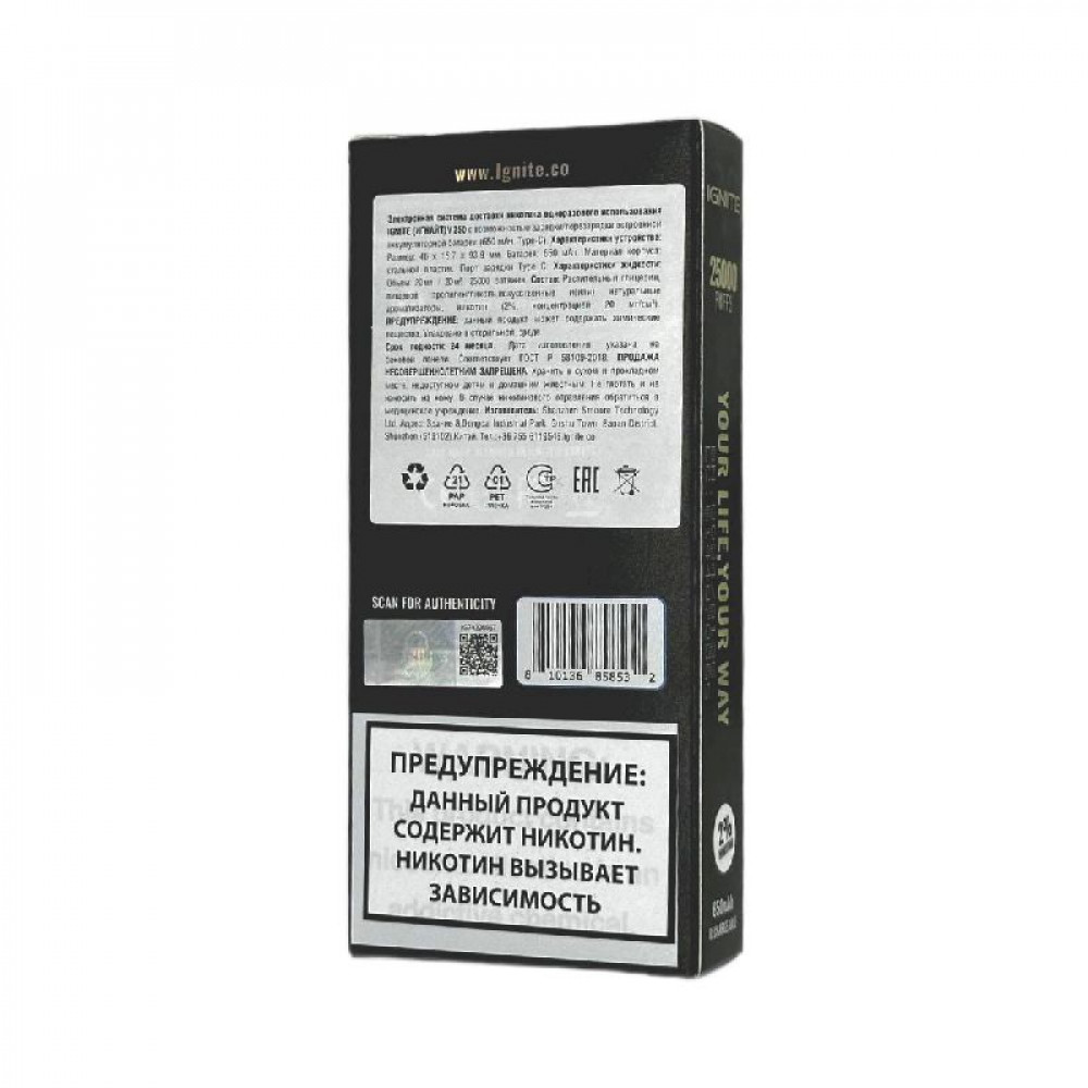 | Анимация затяжкиДа | Аромат/вкусIce Mint (Ледяная мята) | БрендIGNITE |